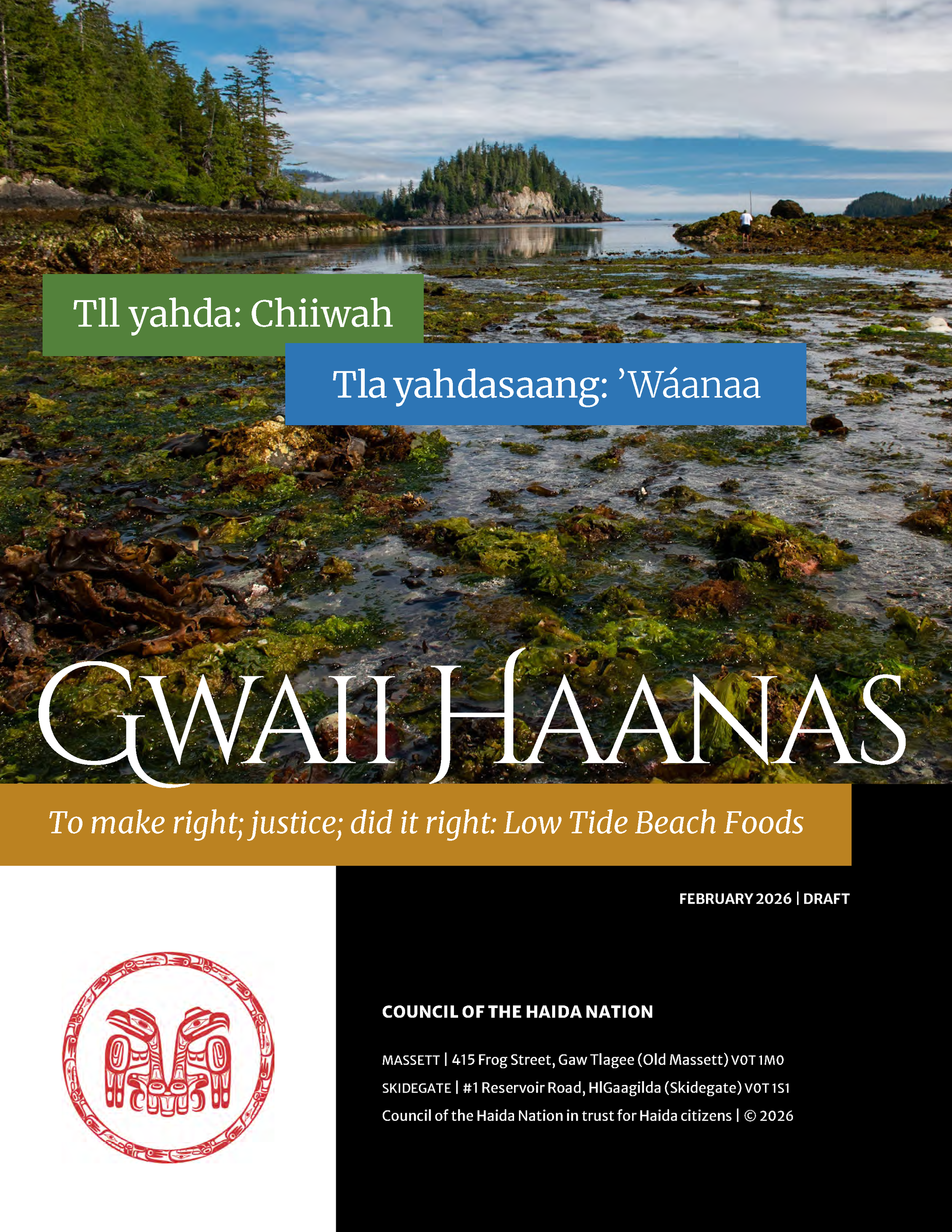 Xaayda Gwaay.yaay ad Xaaydas Giinaa.ah Yahguudang dang.ad Kyaang.gaay ‘Laa Haida Gwaii and Haida Cultural Ways: with Respect and Take Care of