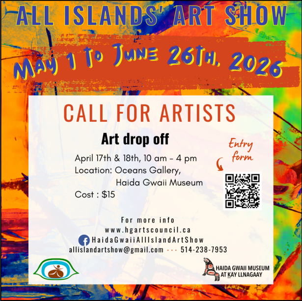 For more info go to Home - Haida Gwaii Arts Council or on FaceBook at HaidaGwaiiAllIslandArtShow