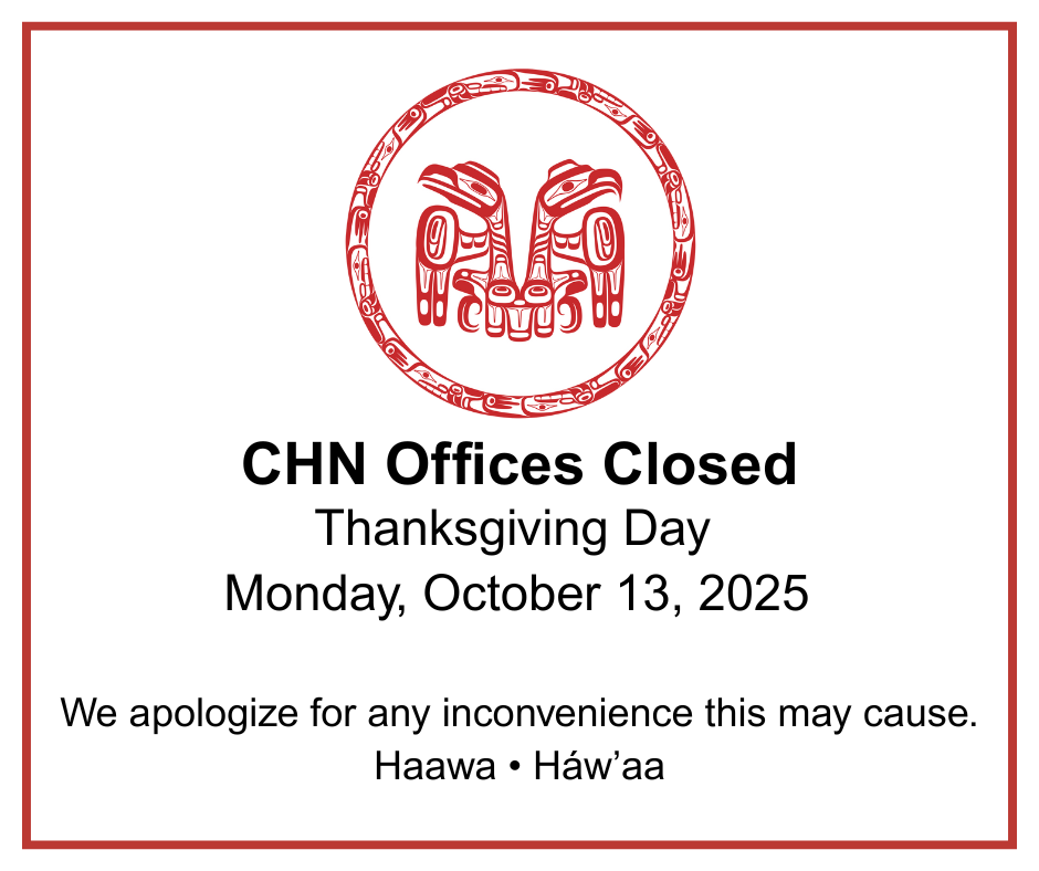 Office Closure: Thanksgiving Day Oct 13 Written By info@haidanation.com Monday, October 13, 2025Sorry for any inconvenience this may cause.Haawa • Háw’aa info@haidanation.com