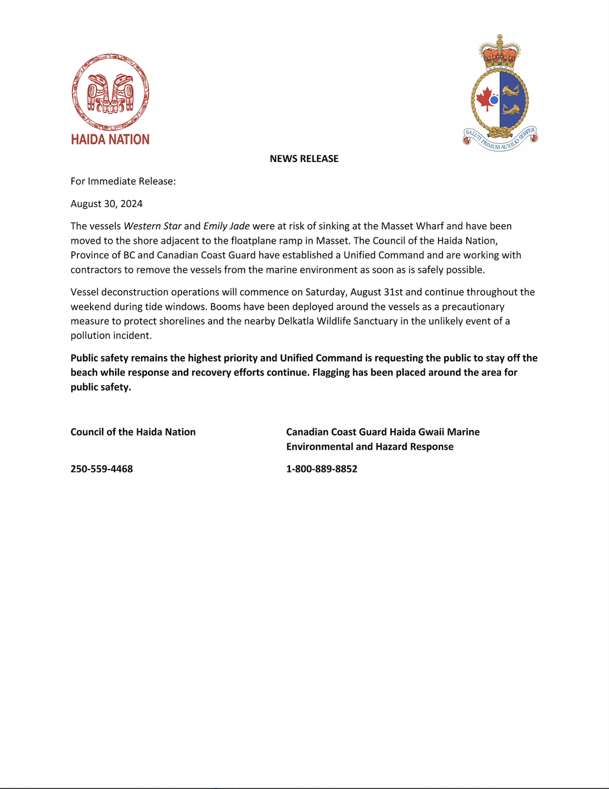 Western Star and Emily Jade News Release Sep 3 Written By info@haidanation.com For Immediate Release: August 30, 2024 info@haidanation.com